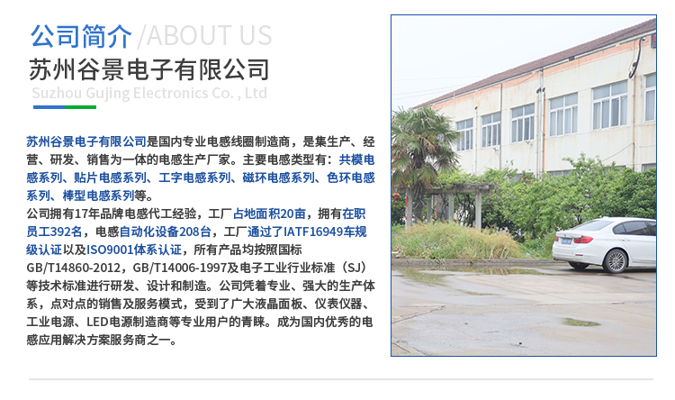 蘇州谷景電子有限公司,一家從事貼片電感,色環電感,工字電感,磁環電感,線圈電感,貼片磁珠,定制電感服務的電感廠家,電感生產商,詳情請咨詢0512-89162980