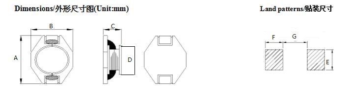 三、貼片功率電感GBS封裝尺寸(UNIT: mm)