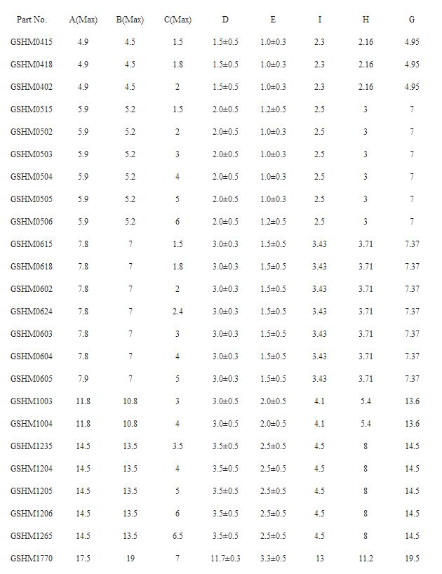 三、一體成型電感封裝尺寸規格(UNIT: mm)