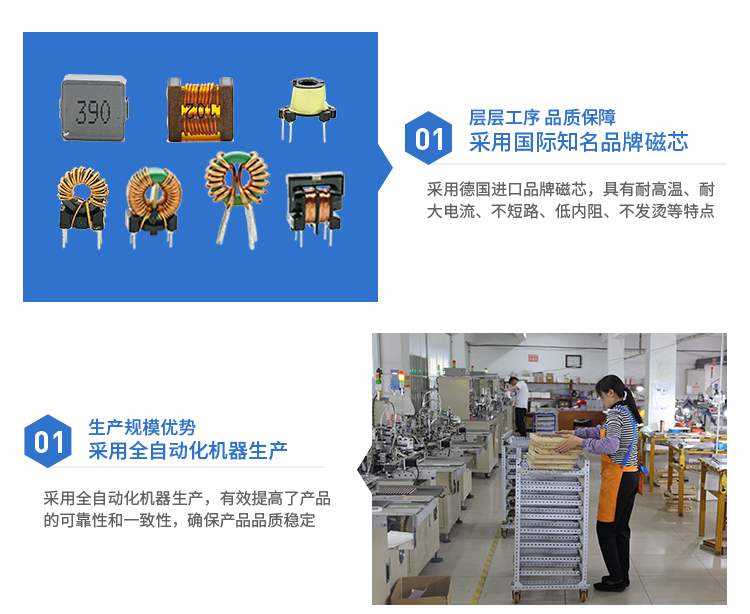 2. 可以串聯或并聯連接,提供較寬的電感值和較大的額定電流值;