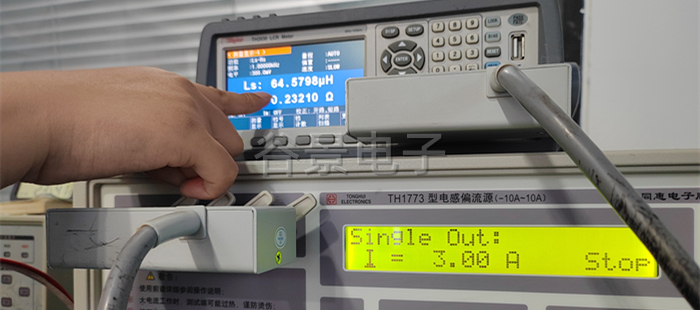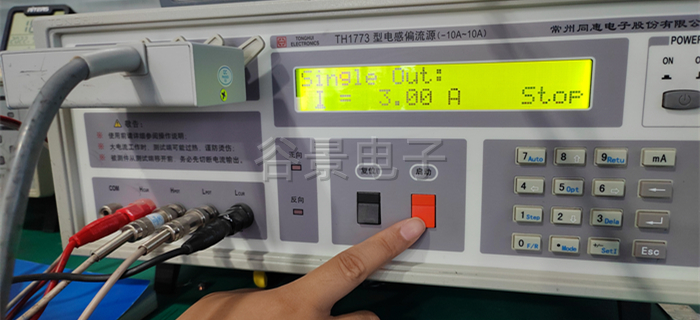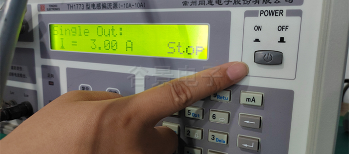 4、點擊測試儀器上的紅色啟動按鈕,開始加載電流,這個時候會看到感值隨著電流的變化在變化,這個時候要做好相應的數據記錄;